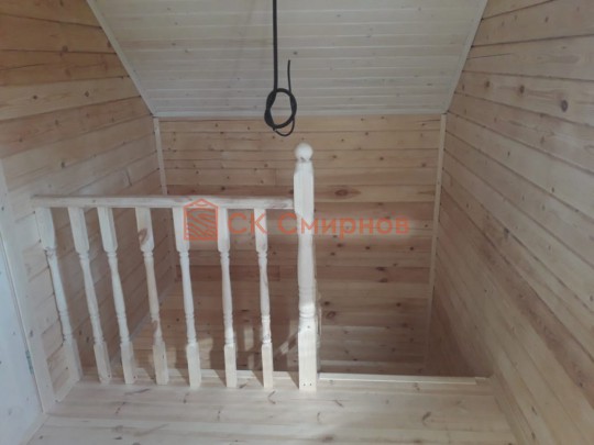 На террасе при условии что она есть делаем перила из строганной доски со всех сторон, столбы террасные также строганные, а не обрезки профилированного бруса с шипом и пазом. Домкратики на столбах для дальнейшей регулировки. Балясины будут сделаны аккуратно. Обратите внимание что в дешёвых случаях это может быть и будет просто вагонка прибирая к неотесанной доске снаружи и столбы будут не квадратные а просто профилированный брус как на видео.