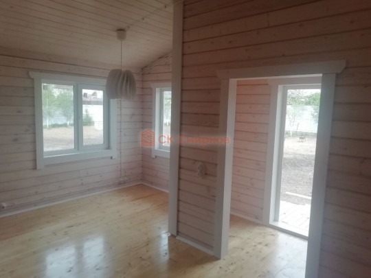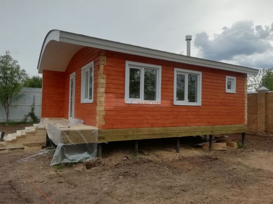 Такая одноэтажная баня 5.3х8 может быть построена из бруса. Ориентировочный срок строительства 31 дней.