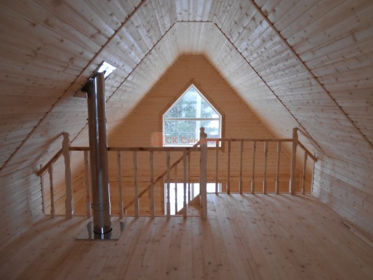 Потолки, стены вансардного каркасного этажа ( если он есть ) обшиваются сухой вагонкой.