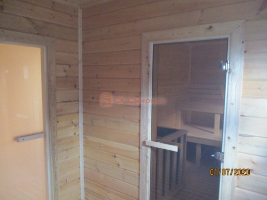 Для строительства использовался нетипичный материал: сухой профилированный брус 140х140 из кедра с имитацией под блокхауз. Таким было желание клиента. Отличный выбор. Кедр обладает очень выразительным запахом, который со временем не исчезает. Лучшая древесина для строительства бани — даём слово.