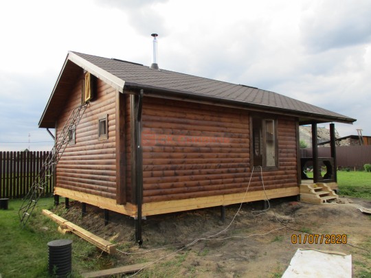 Снаружи баня покрашена составом Пинотекс «Венге».