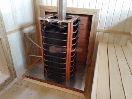 Печь для бани устанавливаем за дополнительную стоимость, любую, у нас есть печные магазины свои и есть доступ практически к любому производителю.