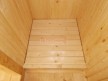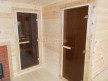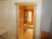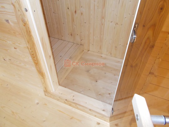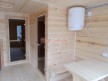 Сруб построен из сухого бруса камерной сушки 140х140. У нашего бруса особенный финский профиль с наплывом по бокам — это защитит баню от появления щелей во время усадки. Кроме того, брусины собираются со сверлением. Это, опять же, нужно для того, чтобы усадка сруба прошла максимально безболезненно.