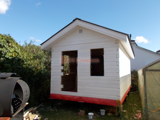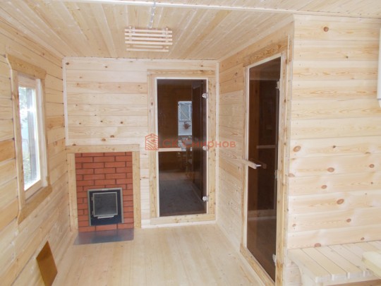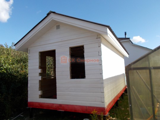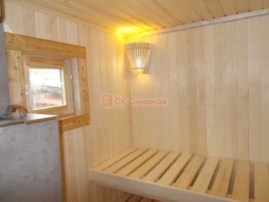 Объект был построен за 10 дней, включая установку свайно-винтового фундамента и полную отделку бани снаружи и внутри под ключ. Особенность наших работ в том, что после отъезда бригады с участки ничего не нужно доделывать. В бане уже есть печь, свет, подведена вода.