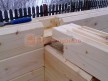Практически все строительные компании, ориентирующиеся на средний класс, закупаются на одной базе. Мы же делаем брус самостоятельно. Наша фишка — удлинённый наплыв по бокам бруска. При сборке сруба наплыв верхнего венца закрывает нижний на 2-3 см. Этого хватает, чтобы обеспечить герметичное соединение и предотвратить появление межвенцовых щелей во время усадки. Это очень важно при бюджетном строительстве из бруса естественной влажности, который без вариантов даст высокую степень усадки.