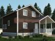 На фото представлен проект красивого дома №177 габаритами 8х11 метров и отличной планировкой общей площадью 140 квадратных метров. Можно выделить несколько особенностей проекта: терраса, веранда, санузел. Коттедж с мансардой, может использоваться как зимний, для постоянного проживания, коттедж.