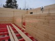 Лаги, обвязку и черновой пол обрабатываем раствором био огне защитой ( зимой оговариваются отдельные условия ), в основном красный цвет, но может быть и бесцветная обработка.
