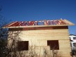 Из профилированного сухого бруса 9х14см, 14х14 см или 14х19 см. Сборка сруба в теплый угол на нагеля или гвозди 200 мм со сверлением отверстия в верхнем брусе (в зависимости от вида бруса).