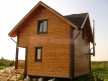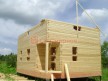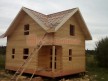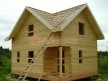 Из профилированного сухого бруса 9х14см, 14х14 см или 14х19 см. Сборка сруба в теплый угол на нагеля или гвозди 200 мм со сверлением отверстия в верхнем брусе (в зависимости от вида бруса).