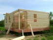 Из профилированного клееного бруса 9х14см, 14х14 см или 14х19 см. Сборка сруба в теплый угол на нагеля или гвозди 200 мм со сверлением отверстия в верхнем брусе (в зависимости от вида бруса).