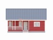 На фото представлен проект минималистичного брусового дома №271 габаритами 7.5х10 метров и отличной планировкой общей площадью 75 квадратных метров. Можно выделить несколько особенностей проекта: открытая терраса, 2 спальни, двускатная крыша. В зависимости от типа утепления и выбранного бруса дом можно построить для дачного или постоянного проживания.