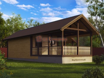 Для строительства недорогой бани 5.5х7.5 метров СК Смирнов разработал проект №183 с обустроенной парной и комнатой отдыха. По планировке общая площадь составляет 41 квадратных метров. Можно выделить несколько особенностей проекта: терраса, туалет, санузел, панорамные окна. Мы строим бани под ключ с полной отделкой снаружи и внутри.