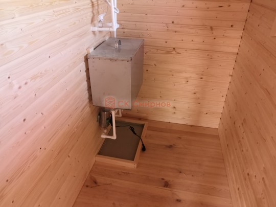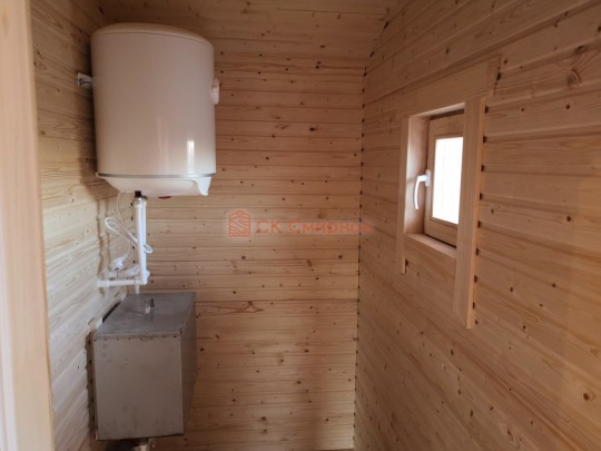 В помывочной устанавливается бойлер, бак, насос, смеситель, одним словом полный комплект чтобы принимать душ даже без центрального водоснабжения.