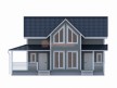 Особенность этого дома — наличие большой угловой террасы, которая вполне заменит собой беседку на дачном участке.